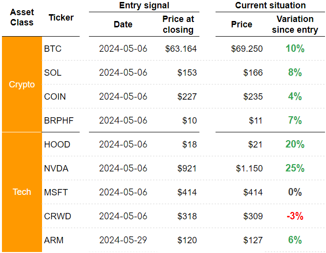 Coming to portfolio positions no additions or exits this week. However, MSFT and CRWD are close to triggering an exit signal. We'll let you know when it happens