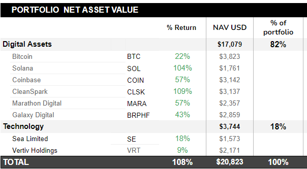 We started the portfolio with $10,000 on October 20th 2023, and we have more than doubled the initial investment since.