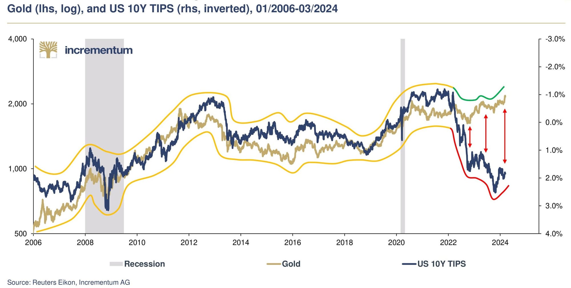 Gold has been rallying and just recently broke the $2100 key technical level. An interesting fact about gold is how it has decoupled from real interest rates. Those recent trends might be an indication that market participants are indeed starting to focus on “monetary debasement” with greater interest. As Charlie Morris said: “Dr. Copper has a PhD in economics, and is an expert on the business cycle, then gold is a professor with a Nobel Prize in monetary debasement.”