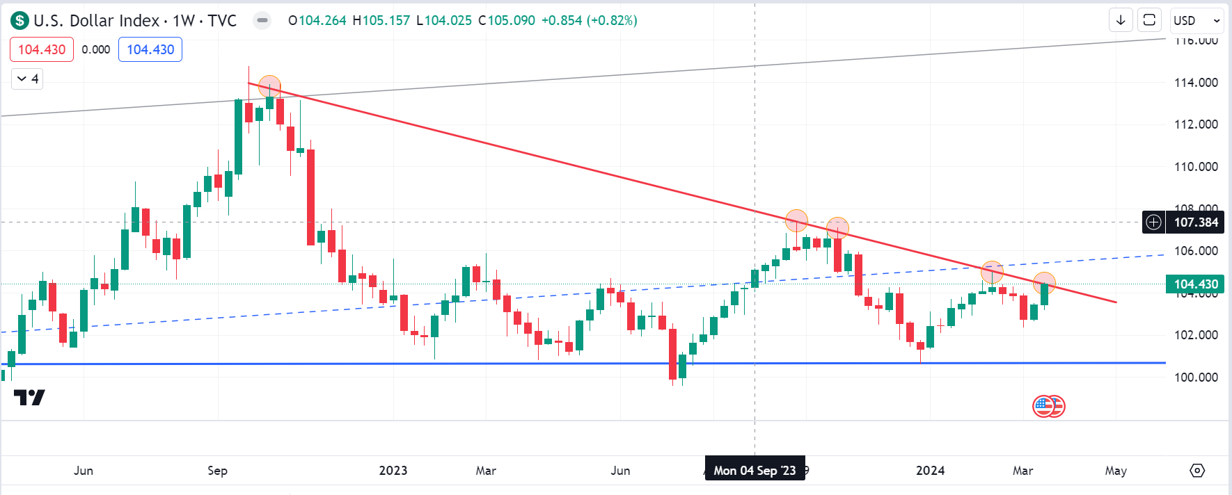 We're keeping a close eye on the US Dollar Index in the near term, as it could break out of its resistance downtrend line. We do not think it´s the most probable scenario but if the breakout is confirmed, it´s gonna be a headwind for risk assets. So, stay on your toes.
